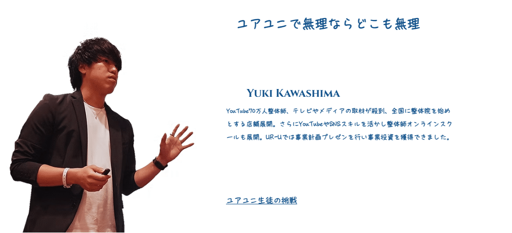 ユアユニの講師は、全員が実際に事業を展開している現役の経営者。理論だけでなく、実践的なスキルを提供することに徹底的にこだわっています。創設者の竹花貴騎氏も、SNSマーケティング会社を成功させ、投資ファンド運営に携わる実績を持っています。彼の過去の失敗とその乗り越え方は、ユアユニが「価値のある教育」を提供し続けている証拠です。