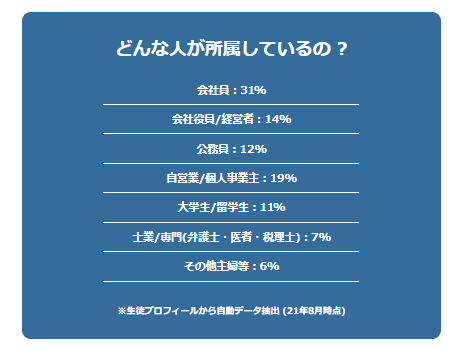 ユアユニには、会社員をはじめとする多様なバックグラウンドの受講生が在籍しており、特に会社員の割合が33%と最も多くなっています。彼らの多くは、いくら働いても給料の上限が見えている、ブラック企業で労働時間と給料が比例しない、このままで良いのか漠然と不安、会社に頼らず自分で稼げるようになりたい、などの悩みを抱えています。ユアユニでは、ビジネス基礎からマーケティング、クリエイティブスキル、ファイナンスまで、幅広い分野の講義が提供されており、ゼロから副業、収益化、脱サラ、法人化まで必要なスキルを全てアプリ一つで学ぶことができます。講義は大きく分けて4つのカテゴリーに分類され、合計400以上の動画講義が提供されており、毎月新しい講義が追加されています。