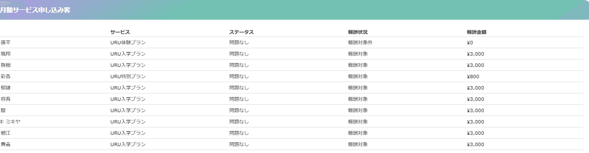 アフィリエイトは毎月1件ずつ報酬が発生しても報酬が積み上がる事はなく、報酬は毎月3,000円のまま。
